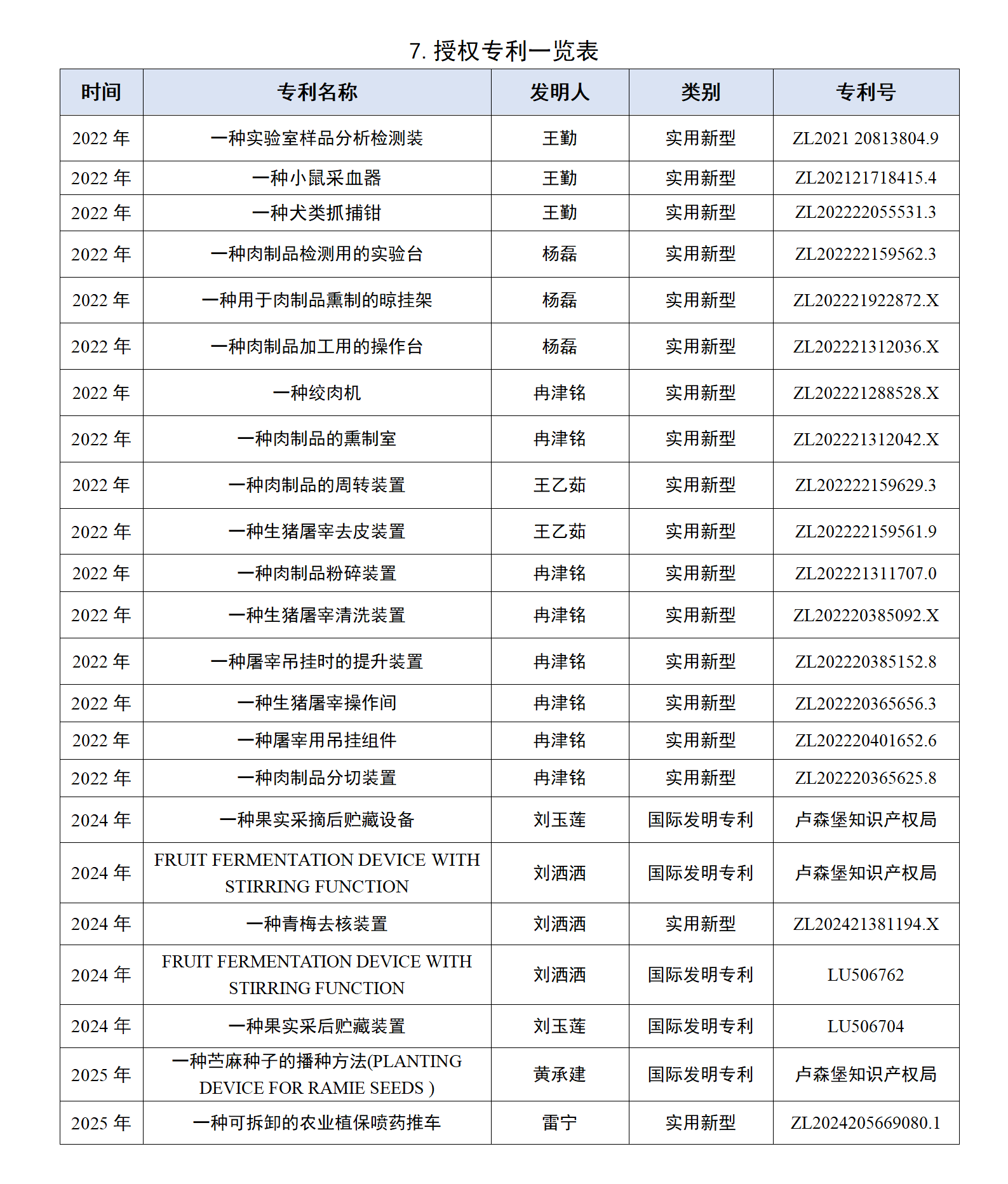 7.授权专利一览表