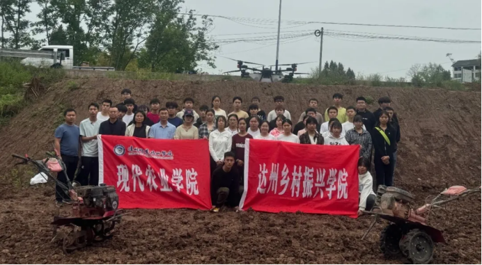 “千名学子定制培养计划”到村任职学员何韩国,作为乡村振兴学院第一批下村任职的学员,毕业后担任石梯镇铧厂沟村村委会副主任,为解决当地农业生产劳动力缺乏的突出难题,他整合当地农业机械成立川禹农机合作社,为当地种植大户提供智慧农机社会化服务,成为远近闻名的“农机大王”。教学现场,何韩国向学员们全面讲解了石梯镇的农业发展概况,带领同学们学习了传统手工耕作和现代农机化耕作两种不同的耕田方式,并详细示范操作了拖拉机、旋耕机、植保无人机等多种现代化农机具。学院老师还一边为同学们讲解农田管理基本知识,一边结合现场农业机械,详细讲解农业机械的工作原理,加强学生对农机操作原理的掌握和实际应用能力。