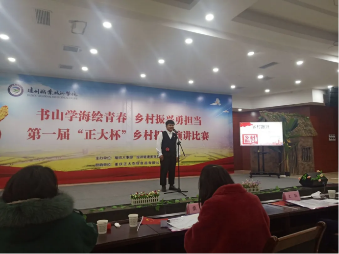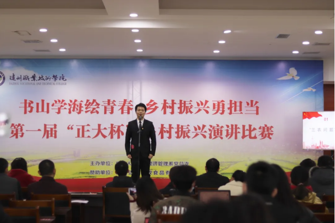近日,达州市“千名学子定制培养计划”乡村振兴课程班“书山学海绘青春 乡村振兴勇担当”主题演讲比赛决赛在达州职业技术学院经济管理系举行。来自2020级的12名大一新生,用热情激昂、饱含深情的演讲,从不同角度、不同层面,说身边人、讲身边事,用一个个生动的小故事,诠释了对实施乡村振兴战略的理解,展现了青年学子立志扎根基层、服务“三农”,勇担时代责任的精神风貌,6名选手分获一、二、三等奖。一等奖:陈福香;二等奖:贾妍、肖科;三等奖:王莉、郑群山、尹文浩。