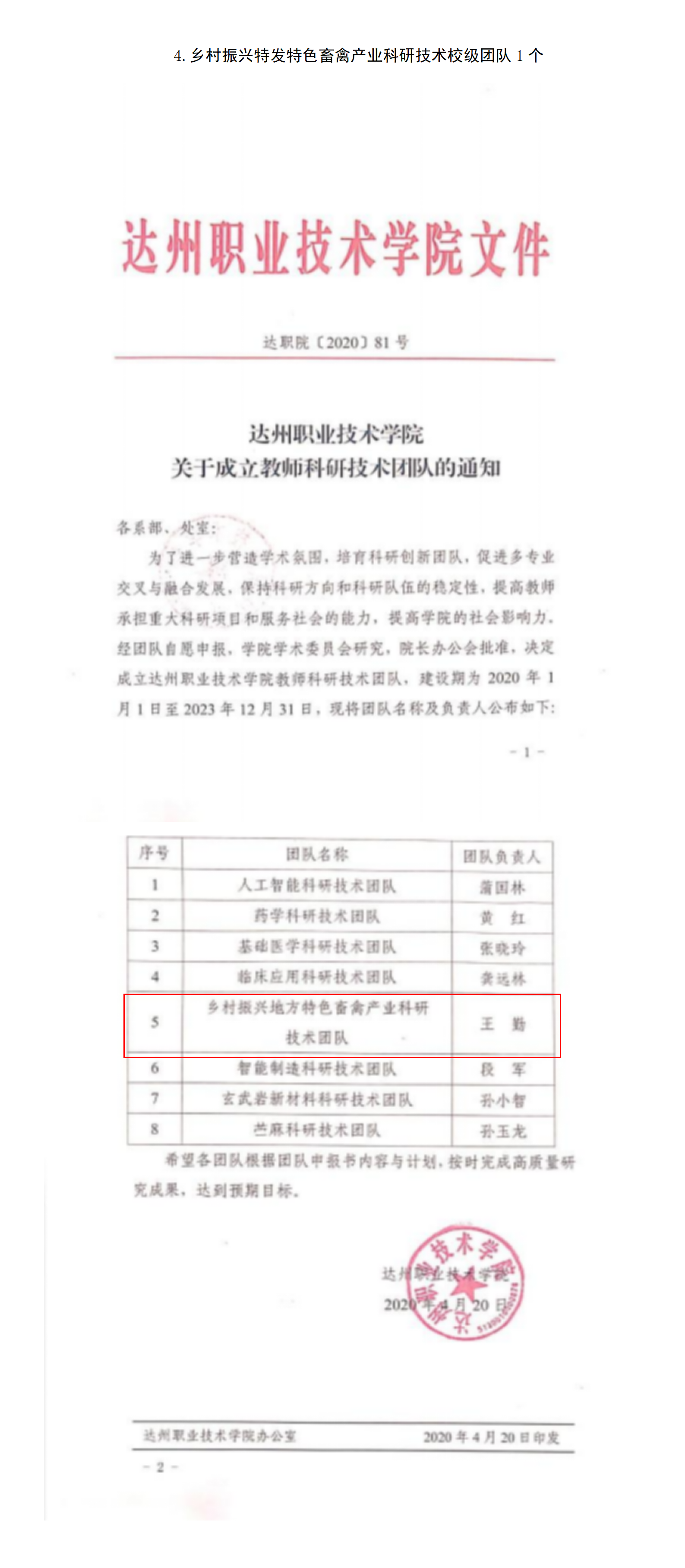4.乡村振兴特发特色畜禽产业科研技术校级团队1个