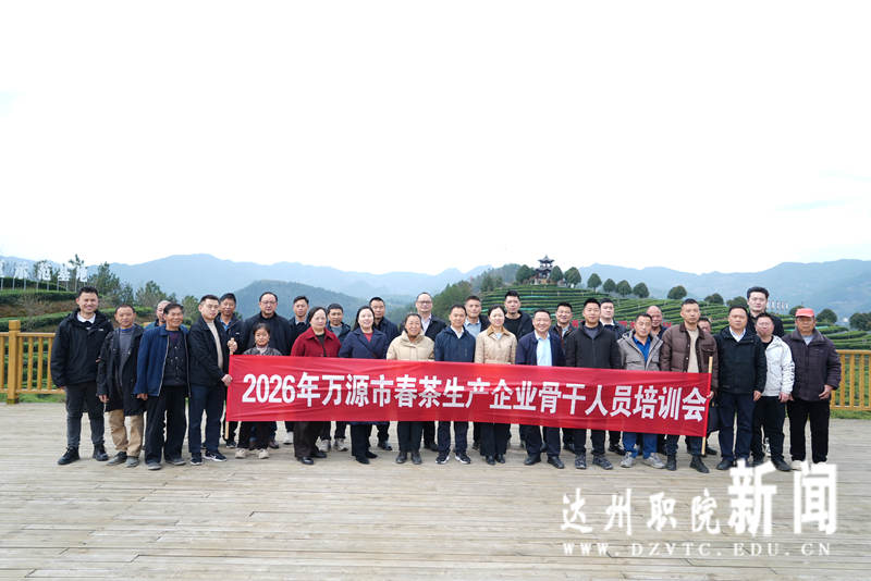 为深化产教融合、校地协同,助力达州茶旅融合高质量发展,我校数字文旅与艺术学院组织达州茶旅融合工程技术中心骨干专家团队,赴万源市农业农村局举办“春茶加工专项培训会”。来自巴晓白茶叶有限公司、四川巴山雀舌名茶实业有限公司、万源市蜀韵生态农业开发有限公司、四川省万源市欣绿茶品有限公司、四川省万源市固军茶叶有限公司等茶企负责人、技术骨干及茶农代表共100余人参加培训。